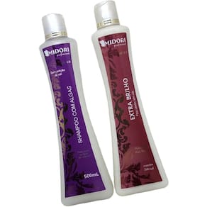MIDORI SHAMPOO ALGAS para uso frequente MODO DE USAR: Aplicar o Shampoo com Algas MIDORI sobre os cabelos molhados, massageando.Enxaguar bem e repetir a operação. Em seguida, aplicar o Condicionador MIDORI, massageando os fios por 2 minutos. Enxaguar com bastante água. COMPOSIÇÃO: Disodium EDTA, Sodium laureth-2 sulfate Sodium Laureth Sulfate, Glycol Distearate, Cocamide DEA, Algae Extract, Orbignya Oleifera Oil, Citric Acid, Methylchloroisothiazolinone, Methylisotiazolinone, Parfum, Aqua. === CONDICIONADOR EXTRA BRILHO Para uso frequente MODO DE USAR: Aplicar o Shampoo com MIDORI sobre os cabelos molhados, massageando. Enxaguar bem e repetir a operação. Em seguida, aplicar o Condicionador Extra Brilho MIDORI, massageando os fios por 2 minutos. Enxaguar com bastante água. APLICAÇÕES RECOMENDADAS: Banho de creme Banho de brilho Tratamentos hidratantes Pode ser acrescido de óleos hidratantes COMPOSIÇÃO: Cetearyl alcohol, dimethicone cetrimonium chloride, triticum vulgare protein, methylparaben, fragrance, água