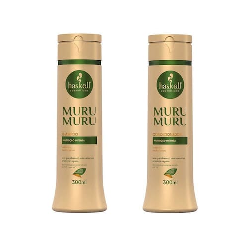 Kit shampoo + condicionador 300ml murumuru Descrição Shampoo haskell 300ml murumuru O shampoo haskell murumuru 300ml é especialmente formulado para cabelos ressecados e sem vida. Com uma rica combinação de ingredientes, incluindo o óleo de murumuru, este shampoo promove uma limpeza suave enquanto hidrata profundamente os fios. Sua fórmula ajuda a restaurar a umidade, deixando os cabelos mais macios, brilhantes e fáceis de pentear. Condicionador haskell 300ml murumuru O condicionador haskell murumuru 300ml é ideal para cabelos ressecados e sem vida, proporcionando uma hidratação intensa e reparação dos fios. Enriquecido com óleo de murumuru, este condicionador atua selando a umidade e oferecendo brilho, maciez e suavidade. A fórmula leve não pesa nos cabelos, tornando-os mais fáceis de desembaraçar e pentear.