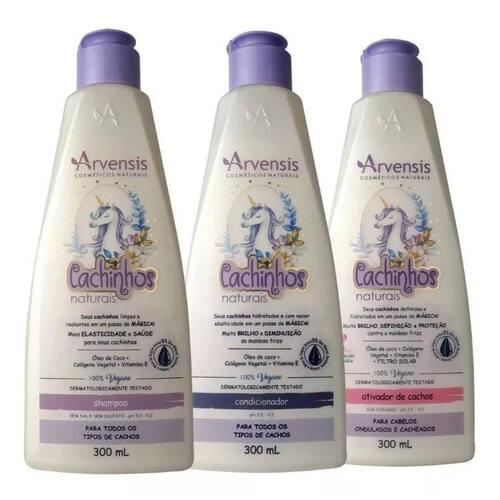Kit shampoo + cond. + ativador infantil cabelos onduladosNeste anúncio contém:1 unidade shampoo cachinhos arvensis 300ml1 unidade condicionador cachinhos arvensis 300ml1 unidade creme ativador cachinhos ondulados e cacheados 300mlShampoo cachinhos arvensisDesenvolvido com uma formulação livre de sulfato e de sal, o shampoo cachinhos naturais é especial para a limpeza suave de todos os tipos de cabelos cacheados. 300ml - sem sal - ph 5,0 - 6,0 low poo Indicação: todos os cachinhos. O uso é recomendado apenas em crianças a partir dos 3 anos, neste caso deve ser aplicado exclusivamente por um adulto. Para crianças maiores de 5 anos: usar sob a supervisão de um adulto.Principais ativos: óleo de coco, colágeno vegetal.Condicionador cachinhos arvensisO condicionador cachinhos naturais é ideal para o tratamento de todos os tipos de cabelos cacheados, proporcionando inúmeros benefícios como nutrição avançada, reparação dos fios danificados, condicionamento equilibrado, maciez, brilho e controle do frizz. 300ml - ph 3,5 - 4,5 low poo Indicação: todos os cachinhos. O uso é recomendado apenas em crianças a partir dos 3 anos, neste caso deve ser aplicado exclusivamente por um adulto. Para crianças maiores de 5 anos: usar sob a supervisão de um adulto.Principais ativos: óleo de coco, colágeno vegetal.Creme ativador cachinhos ondulados e cacheadosA ação protetora do ativador cachinhos ondulados e cacheados confere resistência, formação de filme, controle de frizz, mantendo a umidade natural e definindo cachos radiantes. Contém filtro solar. 300ml - ph 4,0 - 4,5 low poo Indicação: cachos ondulados e cacheados 2a / 2b / 2c / 3a . O uso é recomendado apenas em crianças a partir dos 3 anos, neste caso deve ser aplicado exclusivamente por um adulto. Para crianças maiores de 5 anos: usar sob a supervisão de um adulto.Principais ativos: óleo de coco, colágeno vegetal.