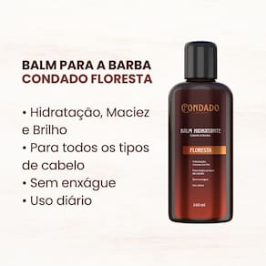 Kit Condado Floresta - Shampoo + Condicionador + Balm Hidratante 140ml ProfissionalO Kit Condado Floresta foi desenvolvido para quem valoriza cuidados completos, resistência dos fios e fragrâncias marcantes. Esse kit une Shampoo, Condicionador e Balm Hidratante, promovendo limpeza, hidratação e nutrição para cabelos, barba e bigode, com sensação de frescor e vitalidade. O shampoo age removendo impurezas e oleosidade, mantendo o couro cabeludo saudável.