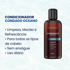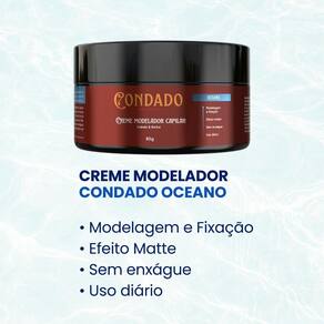 Kit Condado Oceano - Shampoo + Condicionador + Creme Modelador 140ml ProfissionalO Kit Condado Oceano oferece os cuidados completos que todo homem precisa para manter cabelo, barba e bigode sempre limpos, hidratados e cheios de estilo. Composto por Shampoo, Condicionador e Creme Modelador, ele garante praticidade e resultados profissionais no dia a dia.
