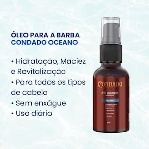 Óleo Hidratante Condado Oceano: nutre e protege a barba, reduzindo o frizz, prevenindo o ressecamento e deixando os fios alinhados.