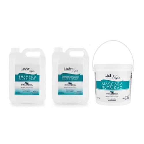 Kit shampoo condicionador e máscara d-pantenol 5 litros Shampoo d-pantenol foi cuidadosamente desenvolvido para promover uma limpeza suave e eficaz, proporcionando hidratação intensa e fortalecimento dos fios. Enriquecido com d-pantenol, aminoácidos essenciais e glicerina, sua fórmula auxilia na reposição de nutrientes, melhorando a resistência, a maciez e o brilho dos cabelos.