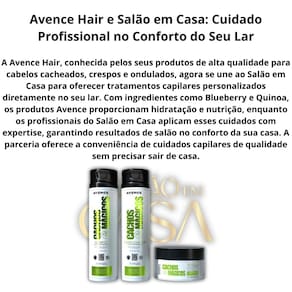 Salão em Casa: O tratamento completo que seus cachos merecem! Com o Kit Shampoo + Condicionador + Máscara Cachos Mágicos Avence Hair 300g, você oferece aos seus cabelos um cuidado completo, do shampoo ao tratamento intensivo da máscara. Obtenha cachos perfeitos, hidratados e definidos todos os dias, no conforto de sua casa!