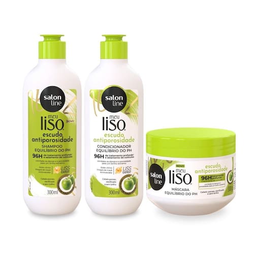 Contém: 01 - Shampoo Escudo Antiporosidade 300ml, Salon Line 01 - Condicionador Escudo Antiporosidade 300ml, Salon Line 01 - Máscara de Tratamento Escudo Antiporosidade 300ml, Salon Line