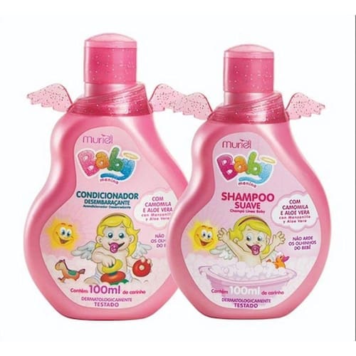 Kit Baby Muriel Menina Shampoo e Condicionador 100mlUsado em bebês.É composto por extrato naturais.Toda a linha Baby Muriel não arde os olhinhos dos bebês. Modo de Usar Shampoo: Aplique o Shampoo muriel baby nos cabelos molhados, massageando-os suavemente, Enxágue em seguida.Modo de Usar Condicionador: Aplique o Condicionador muriel baby nos cabelos molhados, massageando-os suavemente, Enxágue em seguida.-Contém 01 Shampoo 100ml e 01 Condicionador 100ml-Kit Shampoo e Condicionador