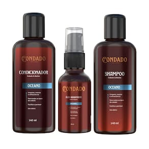 Kit Condado Oceano - Shampoo + Condicionador + Óleo Hidratante para Barba 140ml ProfissionalO Kit Condado Oceano foi criado para homens que buscam praticidade, cuidado completo e estilo no dia a dia. Composto por Shampoo, Condicionador e Óleo Hidratante para Barba, ele garante fios mais limpos, hidratados, macios e uma barba bem cuidada com perfume exclusivo.