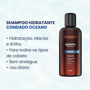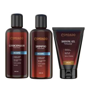 Kit Condado Oceano - Shampoo + Condicionador + Gel de Barbear 140ml ProfissionalO Kit Condado Oceano é ideal para homens que valorizam praticidade, cuidado e frescor no dia a dia. Composto por Shampoo, Condicionador e Gel de Barbear, garante cabelos e barba sempre bem cuidados, além de um barbear confortável e sem irritações.