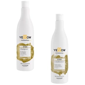 Kit shampoo e condicionador yellow star Este kit contém01 shampoo yellow star 500ml01 condicionador yellow star 500mlYellow star é a linha vegana com princípios ativos 100% naturais e sustentáveis, que realçam a luminosidade natural dos cabelos.Ativos da linha- óleo de argan.Rico em ômegas 3, 6, e vitamina e, que revitalizam o fio e devolvem toda a vida e beleza.- óleo de coco.Profundamente nutritivo e emoliente, também é rico em vitamina e. Repõe todos os ingredientes necessários ao fio saudável.Indicado- cabelos opacos.- cabelos com necessidade de luminosidade.- todos os tipos de cabelos.Benefícios- cabelos com 35% mais brilho.- cabelos com 40% mais penteabilidade.- poder iluminador de 72h.- maciez.- hidratação.- limpeza.- shampooO shampoo para brilho yellow star deixa seus cabelos mais luminosos, leves e fáceis de desembaraçar a partir do primeiro uso.- condicionadorO condicionador yellow star traz uma fórmula que hidrata e proporciona maciez sem pesar os fios, além de deixar seus cabelos desembaraçados e com uma luminosidade como nunca visto antes.Modo de uso ShampooAplicar sobre o couro cabeludo e cabelos molhados. Massagear delicadamente e depois enxaguar. CondicionadorCom cabelo úmido, aplicar ao longo dos comprimentos e das pontas, deixar agir de 2 a 3 minutos. Enxaguar. DicaPara melhores resultados, use a linha completa yellow star.