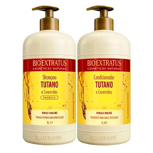 O kit contém: 1 Shampoo Bio Extratus Tutano Ceramidas 1L 1 Condicionador Bio Extratus Tutano Ceramidas 1L