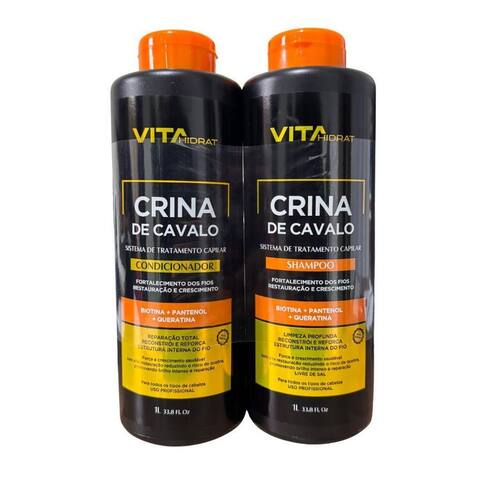 Kit shampoo e condicionador para crescimento acelerado dos cabelos crina de cavalo vita hidrat 1l