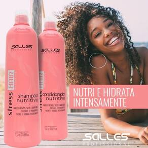 Shampoo Hair Intensive Salles , tratamento Nutritivo pós coloração e permanente Shampoo Hair Nutritivo Salles dá energia e brilho, revigorando e tonificando os fios em toda a sua extensão. É o Shampoo especialmente balanceado para a neutralização do pH alcalino das tinturas e dos produtos de tratamentos químicos após a coloração, permanentes, relaxamentos e etc. Contem Proteínas Hidrolisadas Naturais Queratina Tutano Aloe Vera Nutrientes do Germe de Trigo que atuam na restauração e proteção das cutículas danificadas, ásperas e sem vida. Passo a Passo Usar logo após a coloração e tratamento químico, para neutralizar o pH alcalino e retirar os resíduos químicos remanescente. Para devolver o brilho e maciez, massageie os cabelos suavemente em toda sua extensão. Enxaguar normalmente. Para o sucesso e cuidados com os cabelos complete a lavagem com o Condicionador Hair Salles . Indicação Cabelos crespos, secos, danificados,tintura e permanentes. Efeito Cabelos brilhantes e com vitalidade. Condicionador Hair Intensive Salles , tratamento Nutritivo pós coloração e permanente Condicionador Hair Nutritivo Salles termo-protetor neutraliza as cargas eletrostáticas negativas dos cabelos. Apresenta uma fórmula única e rica que desembaraça os cabelos, deixando os cabelos fortes e fáceis de pentear com maciez e brilho. Sua fórmula balanceada apresenta um resultado extraordinário e único na Reconstrução, Nutrição e Hidratação dos cabelos. Contém Silicone Termo Protetor que protege as cutículas dos cabelos durante aplicação de calor. Contem Proteínas Hidrolisadas Naturais Queratina Tutano Aloe Vera Nutrientes do Germe de Trigo que atuam na restauração e proteção das cutículas danificadas, ásperas e sem vida. Passo a Passo Usar logo após a coloração e tratamento químico, para neutralizar o pH alcalino e retirar os resíduos químicos remanescente. Para devolver o brilho e maciez, massageie os cabelos suavemente em toda sua extensão. Enxaguar normalmente. Para o sucesso e cuidados com os cabelos Use após Lavagem com o Shampoo Hair Salles . Indicação Cabelos crespos, secos, danificados,tintura e permanentes. Efeito: Cabelos brilhantes e com vitalidade. Marca: Não Informado