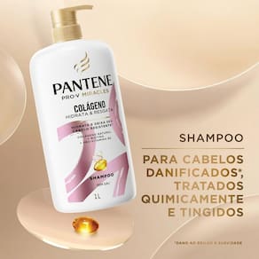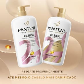 Contém no kit:01- Shampoo Pantene Pro-V Colágeno 1 Litro;01- Condicionador Pantene Pro-V Colágeno 1 Litro. Benefícios:Reestruturação dos fios: O colágeno fortalece e reconstrói a fibra capilar, proporcionando maior resistência.Hidratação profunda: Mantém os cabelos nutridos e previne o ressecamento.Brilho e maciez: Confere um visual radiante e sedoso, realçando a beleza natural dos fios. Modo de usar:Shampoo: Aplique nos cabelos úmidos, massageando suavemente para limpar e cegar os fios.Enxágue completamente.Condicionador: Aplique nos fios limpos, distribuindo uniformemente e desembaraçando.Deixe agir por alguns minutos e enxágue bem.Para melhores resultados, use a linha completa Preenche e Blinda da Pantene. Sobre a Marca Pantene: Lançada na Europa em 1947, Pantene é sinônimo de inovação e excelência no cuidado capilar. Inspirada no Pantenol – o nome científico da vitamina B5 –, uma marca desenvolvida uma tecnologia exclusiva, sete vezes mais eficaz, que fortalece e repara os fios. A tecnologia Pro-V de Pantene é capaz de prevenir a quebra e reduzir a queda capilar em até 98% em apenas uma semana, reafirmando seu compromisso em oferecer resultados surpreendentes e cabelos cheios de vida.