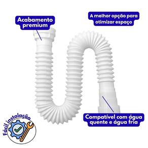 O corpo do sifão é fabricado em material plástico de alta qualidade, resistente à corrosão e ao desgaste, proporcionando longa durabilidade mesmo em uso frequente. Seu formato flexível possibilita ajustes de ângulo e posição, adaptando-se facilmente a diferentes configurações de pias, lavatórios ou tanques. Essa característica torna o produto ideal para locais onde o alinhamento entre a saída da cuba e o ponto de esgoto não é perfeito.