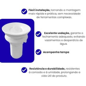 - Instalação prática: Pode ser montado rapidamente, mesmo por pessoas sem experiência - Adaptabilidade: Sifão flexível que se ajusta a diferentes medidas e posições - Proteção contra vazamentos: Sistema de vedação eficiente - Acabamento discreto: Cores neutras e design simples para combinar com qualquer ambiente - Durabilidade garantida: Resistente à umidade, impactos e desgaste do uso diário