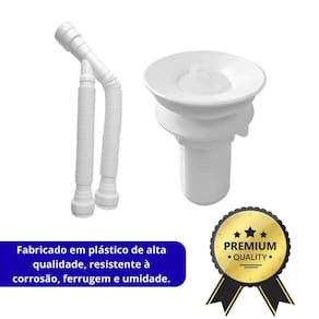 - Sifão duplo: Flexível, comprimento total de 80cm - Material: Plástico resistente, não oxida e suporta umidade constante - Válvula V8: Modelo sem união, cor branca - Compatibilidade: Ideal para cubas ou pias duplas em cozinhas, banheiros e áreas de serviço - Vedação: Sistema seguro contra vazamentos e retorno de odores - Instalação: Rápida, sem necessidade de ferramentas complexas