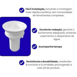 A Válvula V2, que acompanha o kit, assegura uma vedação eficiente, prevenindo vazamentos e bloqueando o retorno de odores desagradáveis. Seu sistema de encaixe rápido e seguro torna a instalação prática e acessível, dispensando ferramentas especializadas e reduzindo o tempo de montagem. O contraste entre a válvula branca e o sifão preto cria um acabamento visual moderno e harmonioso.