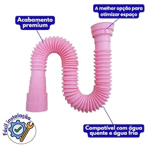 O Kit Sifão Rosa 72cm com Válvula V2 foi desenvolvido para unir eficiência, praticidade e um toque diferenciado de estilo na sua instalação hidráulica. Com um design moderno e uma cor vibrante, ele se destaca pela funcionalidade e pelo visual inovador, ideal para quem quer fugir do tradicional e trazer mais personalidade ao ambiente, seja na cozinha, banheiro ou lavanderia.
