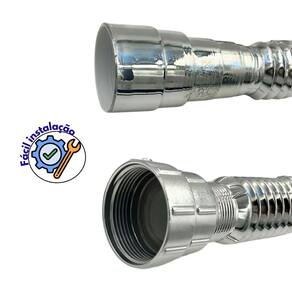 O grande destaque está no sifão sanfonado, com 72cm de comprimento ajustável, fabricado em plástico de engenharia de alta resistência, que recebe um acabamento metalizado cromado. Essa composição proporciona a elegância visual dos metais com a leveza, a flexibilidade e a praticidade do plástico. A estrutura sanfonada permite fácil adaptação a espaços de difícil acesso, compensando desalinhamentos e oferecendo liberdade na montagem, sem a necessidade de cortes, conexões extras ou adaptações improvisadas.