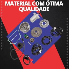01 - Cabo Motor De Partida 01 - Motor De Partida 01 - Relé De Partida 01 - Interruptor De Partida 01 - Cabo De Bateria 01 - Embreagem Colar De Partida 01 - Rolamento Agulha 06 - Parafusos Allen 6X16 01 - Engrenagem De Partida 01 - Cabo De Bateria Negativo 01 - Chicote Partida 01 - Eixo Da Engrenagem De Redução 01 - Engrenagem Colar De Partida 01 - Volante 01 - Junta Tampa Lateral Esquerda