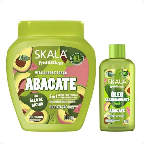 Kit Skala Frutastica Abacate: Creme de tratamento 1000g e Óleo Capilar 90ml Transforme seus cabelos com o Kit Skala Frutastica Abacate, a solução completa para revitalizar seus fios! Este poderoso kit da SKALA combina vitaminas e ciência capilar, oferecendo frescor, vitalidade e nutrientes essenciais. Diga adeus aos cabelos fracos e sem vida com o poder nutritivo do Abacate e a força do Óleo de Rícino, que juntos promovem um crescimento saudável, reduzem a queda por quebra, proporcionam maciez e hidratação profunda. Ideal para todos os tipos de cabelo, o Kit Skala Frutastica Abacate nutre, fortalece, combate a queda e o frizz, deixando seus cabelos radiantes e cheios de vida desde a primeira aplicação. Sinta a diferença e conquiste cabelos deslumbrantes!