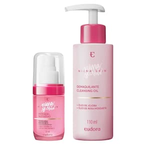 O kit contém dois produtos essenciais para sua rotina de cuidados com a pele. O Cleansing Oil remove impurezas e maquiagem à prova d’água sem agredir a pele. O Hidragel Nutritivo hidrata com leveza, promovendo maciez e toque seco. Fórmulas veganas, com ativos como ácido hialurônico e óleo de jojoba. Ideal para todos os tipos de pele.