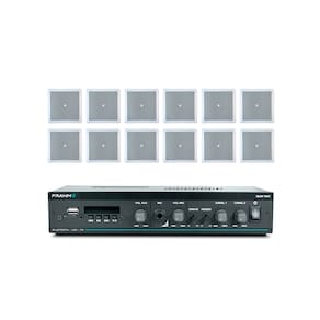 Para a distribuição sonora, o kit é composto por doze caixas acústicas circulares de embutir (6 polegadas). Esta grande quantidade de arandelas garante uma cobertura sonora densa e uniforme, eliminando áreas sem som em grandes espaços. Elas utilizam o design coaxial, otimizando a dispersão sonora e proporcionando uma reprodução clara e balanceada. Este conjunto é perfeito para projetos que exigem a máxima uniformidade e qualidade de áudio distribuído em ambientes extensos como lojas, escritórios abertos ou grandes residências. Ean: 7896673816603
