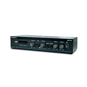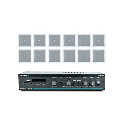 Este kit oferece uma solução robusta e ideal para a sonorização de grandes áreas ou múltiplas zonas, combinando um amplificador eficiente com doze pontos de áudio discretos. O componente central é o Amplificador Estéreo Slim, que, apesar do tamanho compacto, oferece a potência necessária para gerenciar a distribuição sonora em até 12 falantes com clareza. Seu formato fino permite fácil acomodação. A conectividade é moderna, incluindo conexão sem fio (Bluetooth) para streaming e entradas para mídias externas (USB/SD), além de rádio FM e entrada auxiliar.