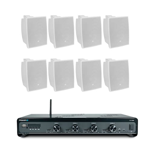 Este conjunto representa uma solução de sonorização de grande escala, ideal para projetos que exigem ampla cobertura e qualidade de áudio superior em múltiplas áreas. Ele combina um amplificador robusto com caixas acústicas de alta fidelidade para uma instalação embutida e discreta. O centro do sistema é o Amplificador Estéreo Digital Slim, que se caracteriza por sua potência elevada, gerenciando com excelência os múltiplos pontos de som. O formato fino (slim) facilita sua instalação em ambientes controlados. Em termos de recursos, ele oferece conexão sem fio (Bluetooth) de alta performance e entrada óptica digital (ideal para TVs), assegurando a máxima clareza sonora.