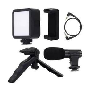 1x - tripé de mesa; 1x - mini iluminador; 1x - microfone + cabo p2; 1x - suporte de celular. Marca: Tripe Suporte