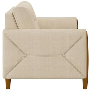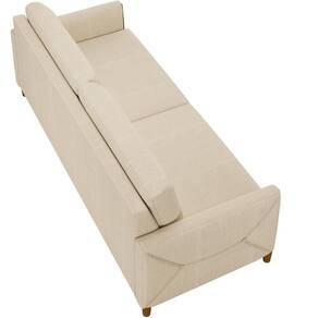 Kit Sofá 03 Lugares Sala Estar 220cm Com Poltrona Berilo Pés De Madeira M03 Linho Bege - Lyam Decor