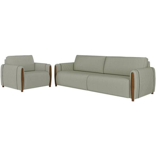Kit Sofa 168 cm E Poltrona Decorativa Encanto Linho, uma ótima opção para quem busca por um ambiente elegante e cheio de personalidade. Estrutura em madeira de reflorestamento (pinus, eucaliptos e placas de OSB) e cintas elásticas de alta resistência. Sofá e Poltrona compostos por madeira imunizada contra mofo, cupim e microrganismos, revestimento em tecido linho, encosto fixo em almofada com fibras e flocos, revestida com kami e manta acrílica, assento em espuma D-26 - D-26 soft, braça em espuma D-20, adornos em espuma D-16, acabamento inferior em kami, e pés em madeira tingidos. Suportando até 120 kg cada. Unindo elementos do design contemporâneo, que proporcionam uma ambientação intimista e com acabamentos refinados, assim se ostenta o exuberante kit Encanto. Estes móveis chegarão na sua casa separado em 02 volumes.
