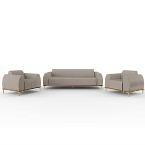 Com bastante personalidade e beleza ímpar o Kit Sofá 2 Lugares 150cm Com 2 Poltronas Molino Pés D'ouro D02 Linho Bege C-107 - Lyam Decor vem para requintar ainda mais sua decoração. Amplamente sofisticado, é ideal se você está buscando por peças elegantes e confortáveis. Possui acabamentos impecáveis, é estruturado em madeira de eucalipto tratado, unidas com grampos galvanizados, base envernizada e pés de alumínio com metalização na cor D’Ouro que o tornam ainda mais atraente e convidativo.