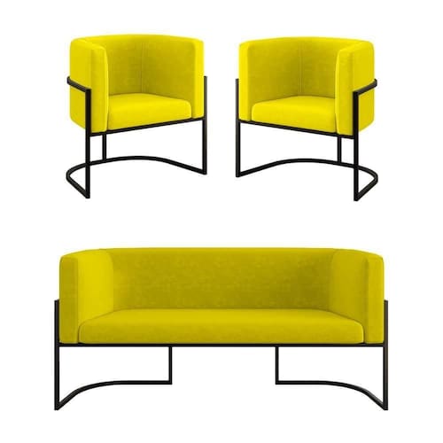 Kit Sofá 2 Lugares + 2 Poltronas Para Recepção Balaqui Amarelo