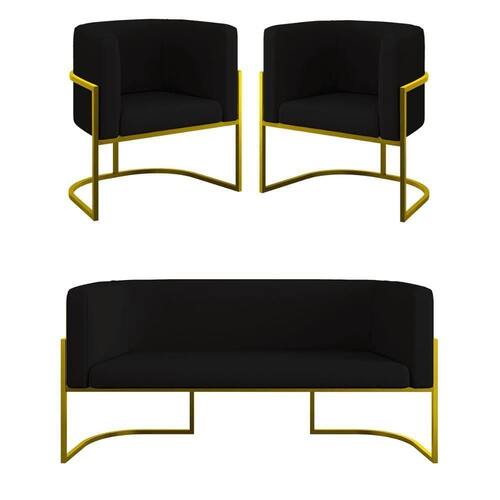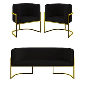 Kit Sofá 2 Lugares + 2 Poltronas Recepção Veludo Dourado Cor:preto Preto