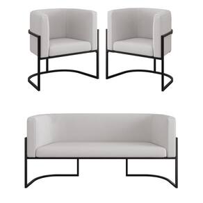 Kit Sofá 2 Lugares + 2 Poltronas Recepção Veludo Preto Bege