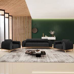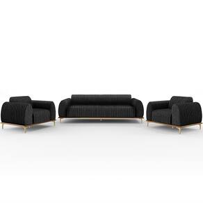 Com bastante personalidade e beleza ímpar o Kit Sofá 3 Lugares 180cm Com 2 Poltronas Molino Pés D'ouro D02 Linho Chumbo D-465 - Lyam Decor vem para requintar ainda mais sua decoração. Amplamente sofisticado, é ideal se você está buscando por peças elegantes e confortáveis. Possui acabamentos impecáveis, é estruturado em madeira de eucalipto tratado, unidas com grampos galvanizados, base envernizada e pés de alumínio com metalização na cor D’Ouro que o tornam ainda mais atraente e convidativo.