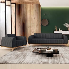 Com bastante personalidade e beleza ímpar o Kit Sofá 3 Lugares 180cm Com Poltrona Molino Pés D'ouro D02 Linho Cinza Escuro - Lyam Decor vem para requintar ainda mais sua decoração. Amplamente sofisticado, é ideal se você está buscando por peças elegantes e confortáveis. Possui acabamentos impecáveis, é estruturado em madeira de eucalipto tratado, unidas com grampos galvanizados, base envernizada e pés de alumínio com metalização na cor D’Ouro que o tornam ainda mais atraente e convidativo.