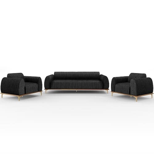 Com bastante personalidade e beleza ímpar o Kit Sofá 3 Lugares 210cm Com 2 Poltronas Molino Pés D'ouro D02 Linho Chumbo D-465 - Lyam Decor vem para requintar ainda mais sua decoração. Amplamente sofisticado, é ideal se você está buscando por peças elegantes e confortáveis. Possui acabamentos impecáveis, é estruturado em madeira de eucalipto tratado, unidas com grampos galvanizados, base envernizada e pés de alumínio com metalização na cor DOuro que o tornam ainda mais atraente e convidativo.