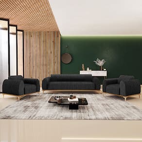 Com bastante personalidade e beleza ímpar o Kit Sofá 3 Lugares 210cm Com 2 Poltronas Molino Pés D'ouro D02 Linho Chumbo D-465 - Lyam Decor vem para requintar ainda mais sua decoração. Amplamente sofisticado, é ideal se você está buscando por peças elegantes e confortáveis. Possui acabamentos impecáveis, é estruturado em madeira de eucalipto tratado, unidas com grampos galvanizados, base envernizada e pés de alumínio com metalização na cor D’Ouro que o tornam ainda mais atraente e convidativo.