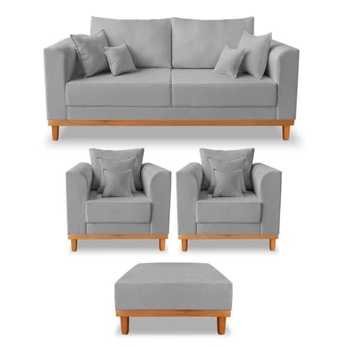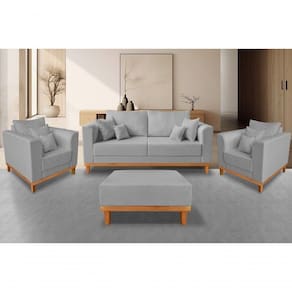 Madeira (base e pés), Tecido de linhomodelo de referência em elegância e . O Kit Beny +Puff Isa é um luxo e vai tornar o seu ambiente ainda mais lindo e aconchegante. Conta com almofada no encosto para trazer maior conforto e também acompanha almofadas de decoração para dar aquele toque final de bom gosto e sofisticação. O seu design é incrível para todos os ambientes, sua base e pés de madeira trazem a sustentação necessária e o tecido de alta qualidade fazem dele a combinação ideal para o seu ambiente!