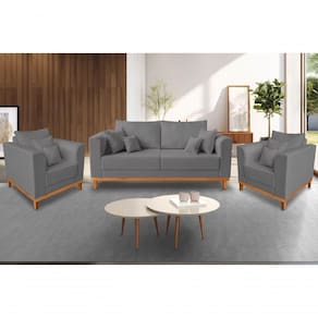 Conheça o Kit de Sofá e Poltronas Viena, modelo de referência em elegância e . O Kit Viena é um luxo e vai tornar o seu ambiente ainda mais lindo e aconchegante. Conta com almofada no encosto para trazer maior conforto e também acompanha almofadas de decoração para dar aquele toque final de bom gosto e sofisticação. O seu design é incrível para todos os ambientes, sua base e pés de madeira trazem a sustentação necessária e o tecido de alta qualidade fazem dele a combinação ideal para o seu ambiente!
