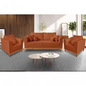 Kit Sofá 03 Lugares + 02 Poltronas Beny Viena Suede - Madeira Prima Deccor