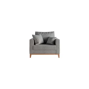 Kit Sofá e 2 Poltronas Decorativa Beni 1,60cm Beni Base Madeira Linho Cinza - Montanaris Decor