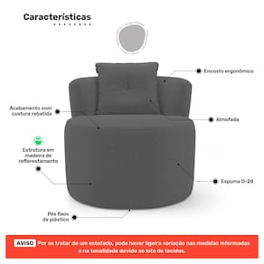 Kit Sofá e Poltrona Orgânica Living Bob com Almofadas Bouclê Cinza Escuro - Desk Design