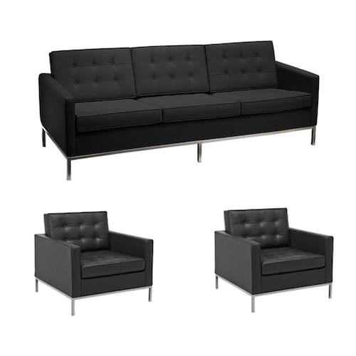 AS IMAGENS SÃO MERAMENTE ILUSTRATIVAS E PODEM SOFRER VARIAÇÕES DE COR E PEQUENOS DETALHES DE ACORDO COM O SEU MONITOR, ILUMINAÇÃO DO AMBIENTE E ATÉ MESMO A SUA PERCEPÇÃO VISUAL.Kit Sofà Fk 3 Lugares Mais 2 Poltronas 1 Lugar 100% Couro Natural Preto