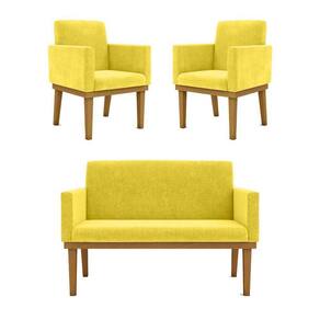 Kit Sofá Namoradeira + Poltrona Reforçada Sala De Estar Cor:amarelo