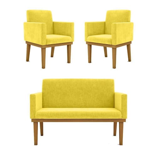 Kit Sofá Namoradeira + Poltrona Reforçada amarelo
