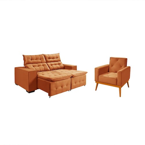 Tipo: Conjunto Modelo: Poltrona Florença e Sofá Bari Tecido: Veludo Cor: Terracota