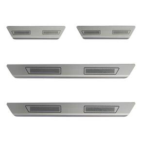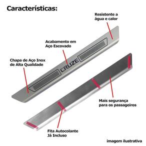 Kit soleira de porta aço inox escovado chevrolet cruze Soleira de porta em aço inox com acabamento em aço escovado. Proporciona uma área extra de preservação para a pintura de seu carro. Aumentando o cuidado contra riscos e arranhões, e ainda dando um estilo esportivo ao seu veículo. Kit de 4 soleiras para o chevrolet cruze todos os anos. Características: - feito em aço inox - modelo específico para o veículo - cor: prata e cinza - referência: sl040 - aplicação: autocolante fita inclusa Itens inclusos: - duas 2 soleiras grandes para a porta dianteira. - duas 2 soleiras pequenas para a porta traseira. Dimensões - comprimento: 45 cm maior / 20 cm menor - largura: 4,5 cm todos - espessura: 1 cm todos de 30 dias para defeitos de fabricação. Marca: Não Informado